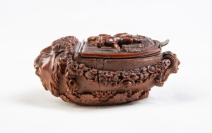 Portraits in a Nutshell showcases intricately carved snuff boxes and bottles sculpted from coquilla nuts between the seventeenth and mid-nineteenth centuries. Both utilitarian and decorative, these containers represent a stunning diversity of artistic approaches and subject matter. Just as the use of snuff crossed lines of geographic origin and racial and social hierarchy, so too, did the objects that contained it. As a result, coquilla nut snuff boxes and bottles present a rich material archive of the Atlantic world and the central role of Indigenous and Black histories within it.